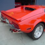 The Pantera was a collaboration between Ford and Detomaso in the early 70’s. Henry Ford Jr. was chasing Ferrari at Lemans with the GT 40 cars and in 69′ his GT40’s came in first second and third. Ford wanted to build a car on the GT platform but for street use. Using the same ZF trans-axle and his new 351 ci Cleveland engine, the Pantera was born. The mid engine design and independent suspension gave the car great handling and balance.Four wheel disc brakes, and coil over shocks, all race car inspired created a true super-car. Around 4500 Panteras were built between 1971 and 74. The gas shortage and collision bumper requirements of the day ended Fords involvement, and the rights to the car were sold back to Mr. Detomaso. The car was built in limited numbers until the early 90’s but not imported to the US. A few grey market cars were brought in skirting import regulations, but the Pantera had run it’s course. Today, these cars are a great value for true performance sports cars. They are easy to repair and parts are still available through many vendors.We pulled the motor to get to the tank. Found rust behind tank. I kinda knew it was there. We are fixing it now, getting ready for the new 408 CI motor! Just painted the engine bay area. Looks like candy, well it is to me! The 408 is ready! It was run on the stand before intalling. It is all back together Wow what a beast. The new motor pulls hard and blisters the tires all the way to 6800 when it hits the rev limit. It drives real nice around town… sounds like trumpents from heaven…but when I hold it down.. at 4 g it really does break the tires loose… better be pointed straight ahead…. I’m afraid to hold it down into the upper part of third gear because it is going too fast to have the tires slipping.. for ME! It had to be streetable. 10-1 I can’t run race gas.. It runs great on 93 oct.. I used a bottle of oct boost to start with… but I run the timing kinda high and it still don’t “run on” when I shut her down. How do you like the new mirrors?